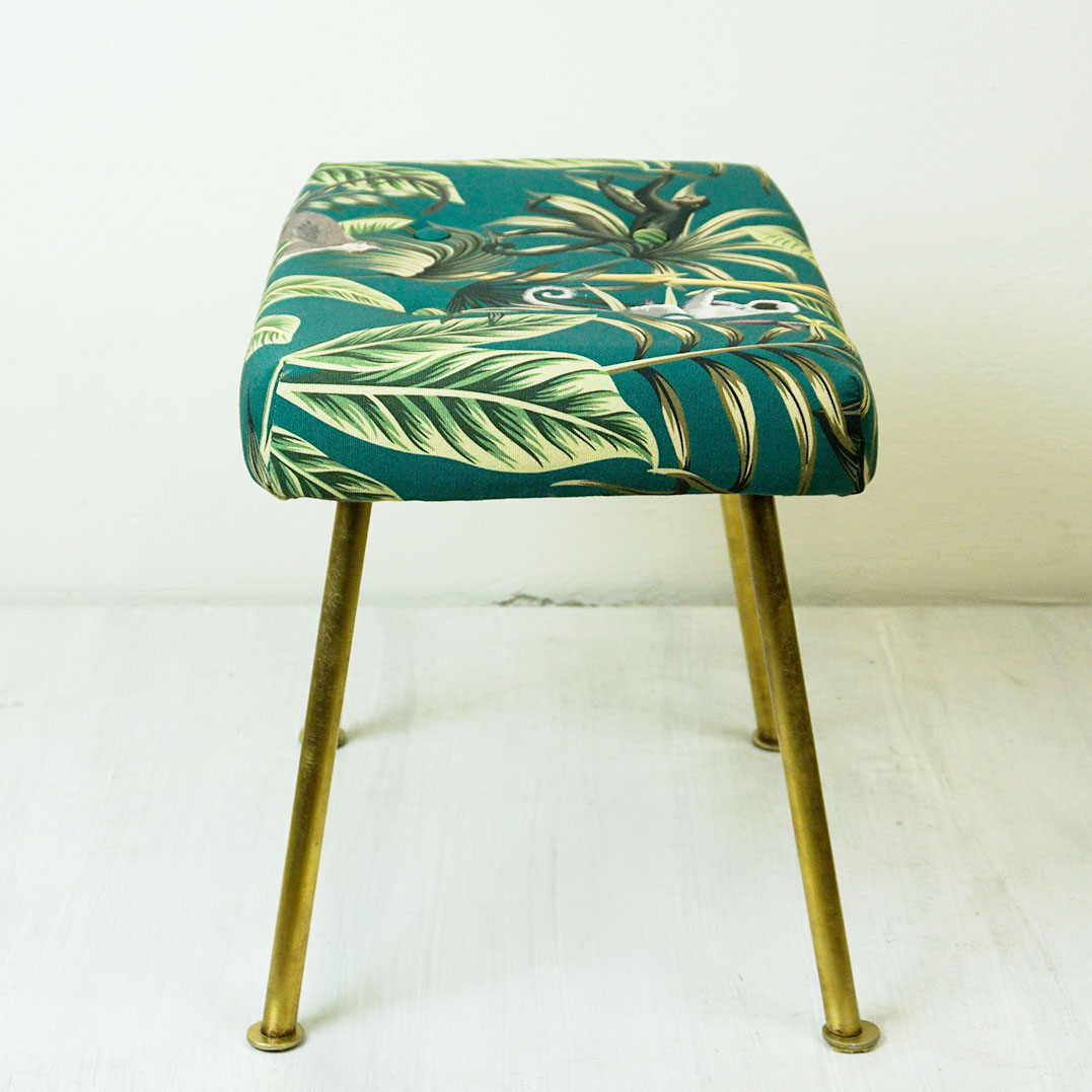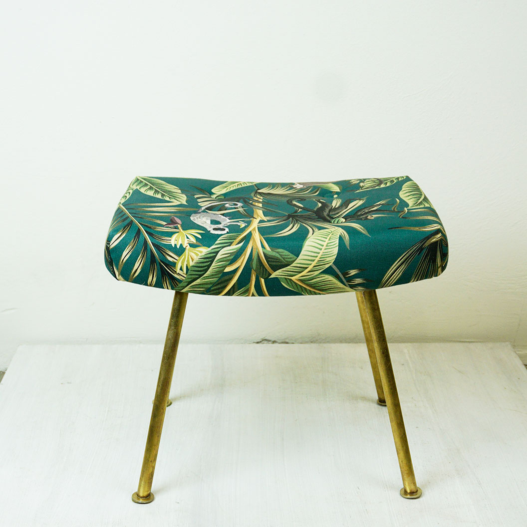 brass,  renewed Upholstery with green Ape Fabric